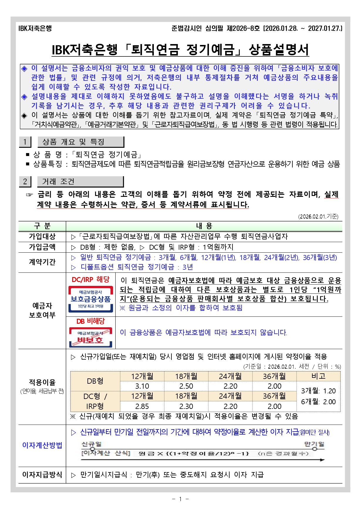 퇴직연금정기예금 상품설명서 작성자: 관리자 작성시간: 2019-07-02 16:43 조회수: 8,363 퇴직연금 정기예금 상품설명서_20260201시행.pdf (303 K) [20] 이전글 자유적립예금 상품설명서 다음글 ISA정기예금 상품설명서 목록