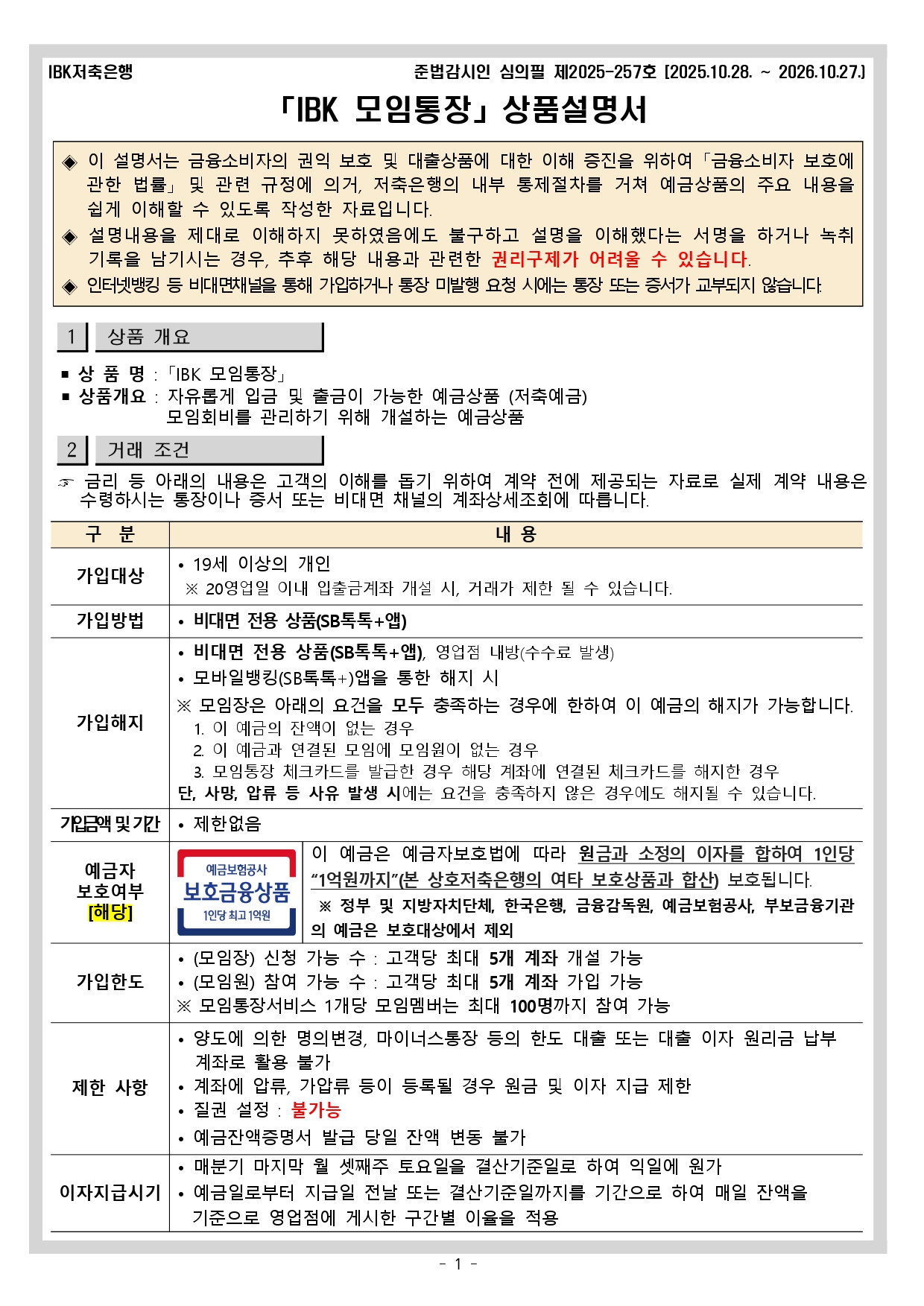 IBK 모임통장 상품설명서 작성자: 관리자 작성시간: 2025-10-28 17:53 조회수: 23 IBK모임통장 상품설명서_20251029시행_.pdf (160 K) [2] 이전글 사랑愛 얼라 정기적금 다음글 IBK 미성년자통장 상품설명서 목록