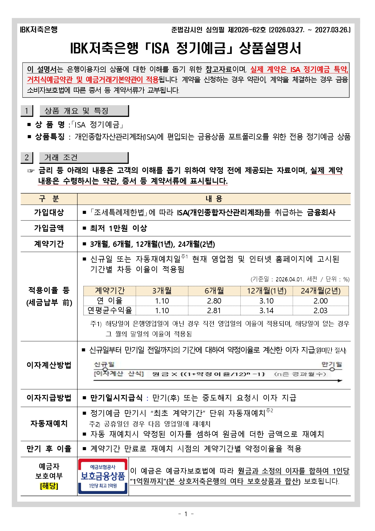 ISA정기예금 상품설명서 작성자: 관리자 작성시간: 2019-07-02 16:49 조회수: 8,995 ISA정기예금 상품설명서_20260401시행.pdf (265 K) [31] 이전글 퇴직연금정기예금 상품설명서 다음글 보통예금 상품설명서 목록