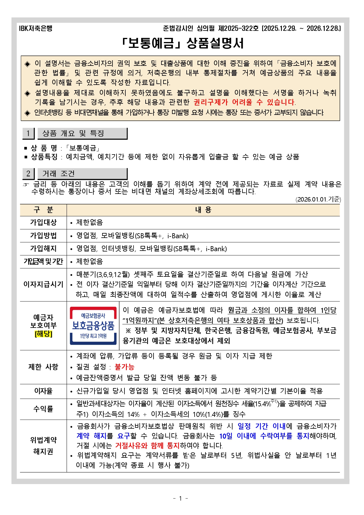 보통예금 상품설명서 작성자: 관리자 작성시간: 2021-03-26 16:46 조회수: 7,324 보통예금 상품설명서_20260101시행.pdf (145 K) [46] 이전글 ISA정기예금 상품설명서 다음글 (판매중단) 기업자유예금 상품설명서 목록