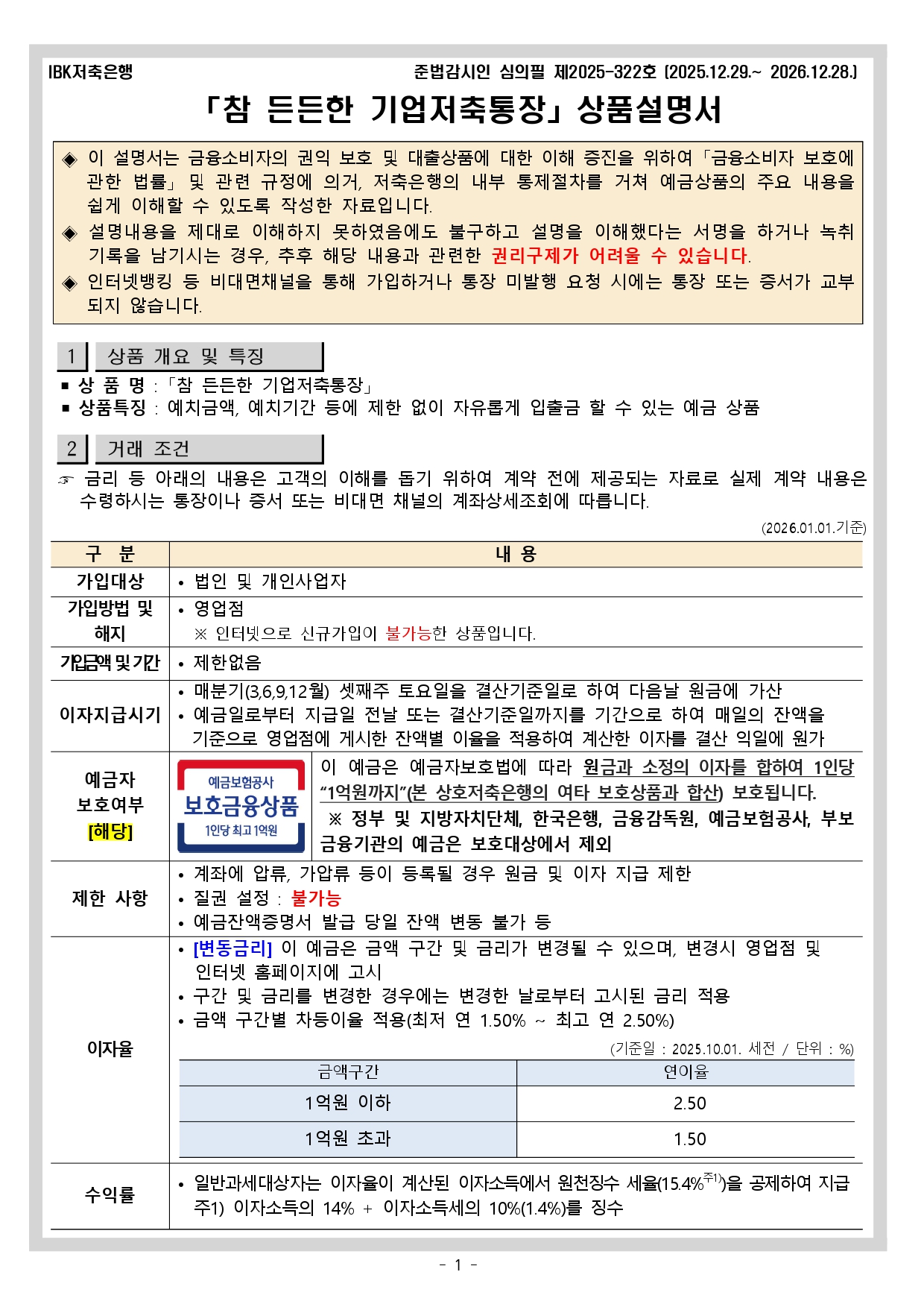 (판매중단) 참 든든한 기업저축통장 상품설명서 작성자: 관리자 작성시간: 2023-07-25 17:28 조회수: 6,105 참든든한 기업저축통장 상품설명서_20260101시행.pdf (147 K) [49] 이전글 IBKSB 회전정기예금(변동금리) 상품설명서 다음글 (판매중단) 이어드림(Year Dream) 회전 정기예금 상품설명서 목록